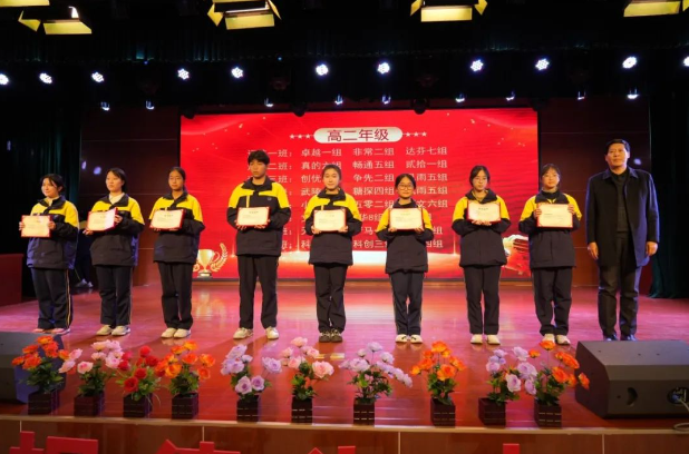 获得表彰的同学与学习共同体代表满怀自豪地登上领奖台,他们手捧荣誉,脸上洋溢着收获的喜悦。