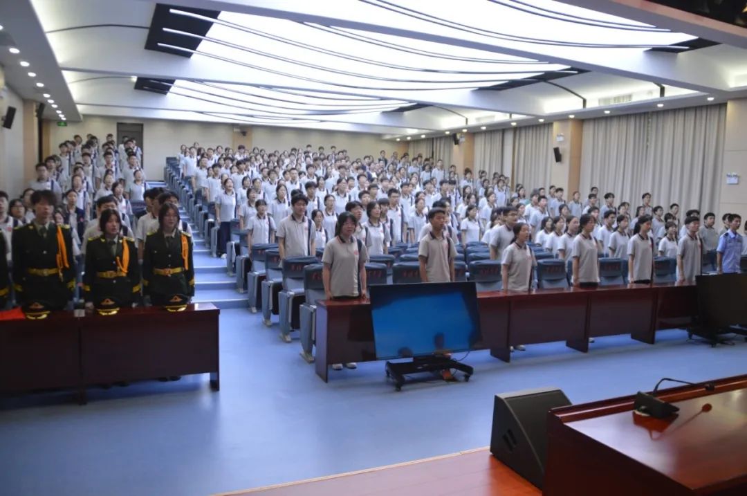 仪式在雄壮的国歌声中拉开帷幕。师生肃立齐唱,铿锵的旋律激荡着青春的热血,彰显着新时代青年与祖国同频共振的赤子之心。