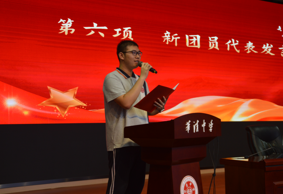 新团员代表田孟源同学的发言掷地有声:作为在“两个一百年”奋斗目标历史交汇期入团的新时代青年,将牢记“国之大者”,用青春在全面建设社会主义现代化国家的火热实践中绽放绚丽之花。在生活中乐于奉献,用实际行动践行“请党放心,强国有我”的誓言。