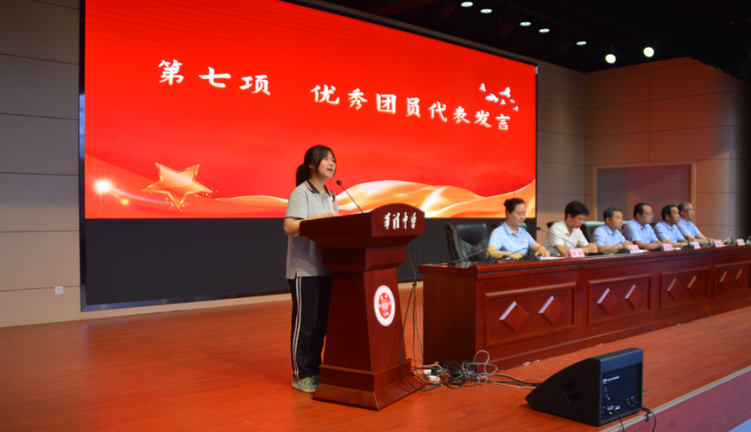 优秀团员代表姚正扬同学在发言时说:“作为一名共青团员应该感到无比光荣与自豪,同时也要感到自己身上寄托着祖国的希望。应时刻牢记自己是一名光荣的共青团员,是先进青年的代表,是身边同学的榜样。”