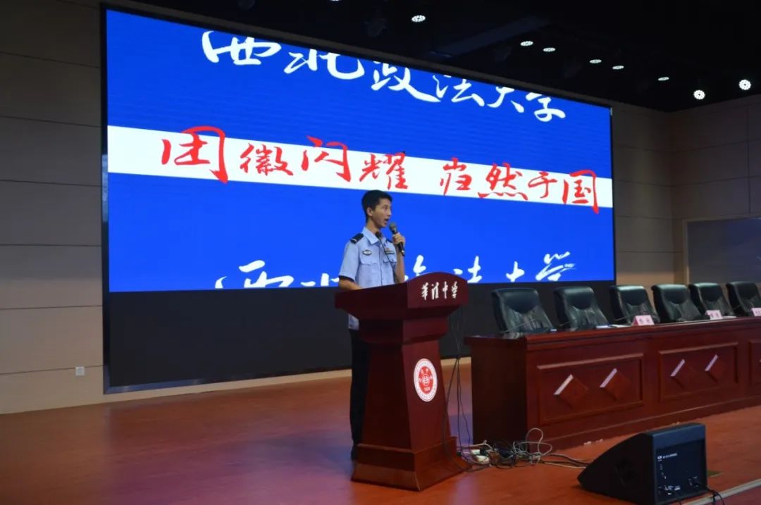 华清中学优秀毕业生,西安市优秀中学生,现就读于西北政法大学的张抚远同学做《团徽闪耀 岿然于国》主题微团课。她说:“站在承载着自己三年青春记忆的华清园,看到华清园里依旧葱郁的梧桐,听到教学楼传来的熟悉铃声,我仿佛又回到了那段被母校悉心培育的时光。”张抚远同学以对母校的深情告白开场,动情地回忆道,正是在华清园的熏陶下,在老师们的言传身教中,自己才真正懂得了青春的责任与担当。