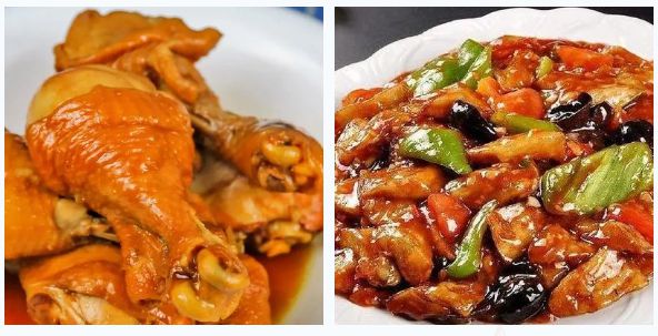 菜类:卤鸡腿、尖椒洋葱炒肉、包菜炒培根、红烧茄子、酸豆角烧凉粉
