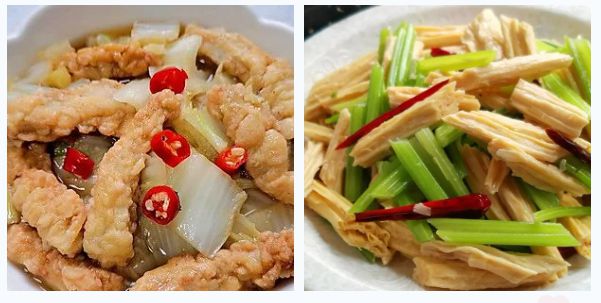 菜类:椒盐里脊、白菜炖小酥肉、孜然炒鸡丁、芹菜炒腐竹、青菜炒豆皮